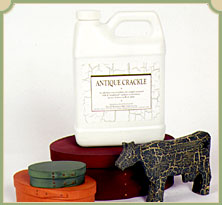 To achieve an immediate antique look on surfaces painted with Milk Paint and some other water based finishes.This natural gelatin product is brushed on before the final coat of paint for an instant "alligator" or crackled look. Non-toxic. FDA approved mildewcide. Comes in pints, quarts, and gallons.